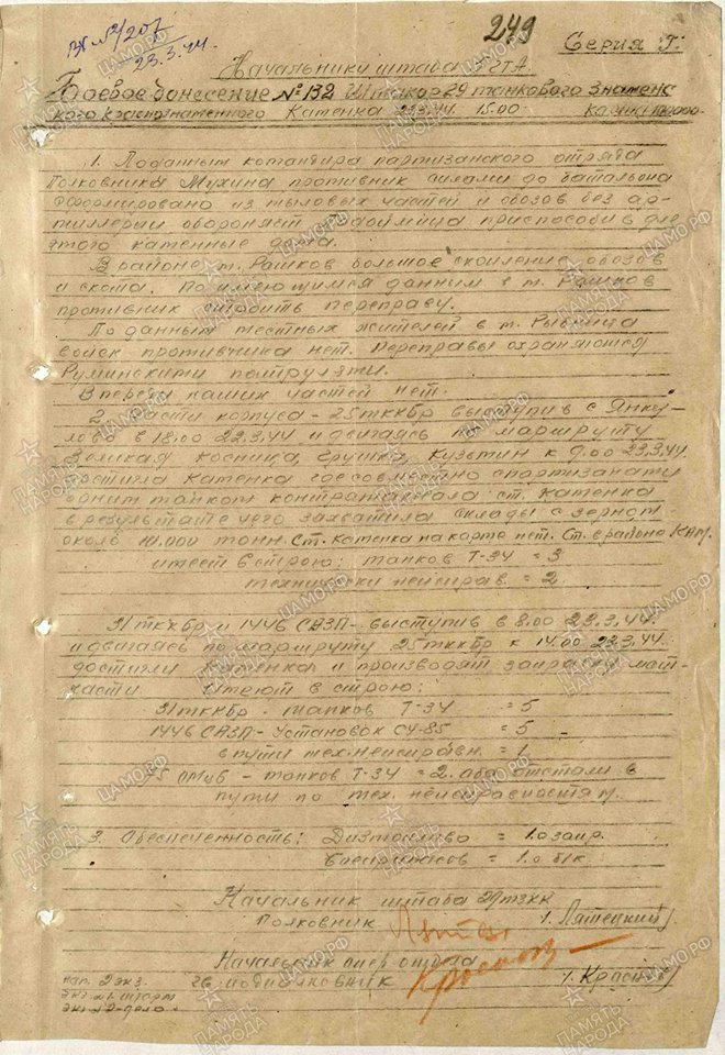 Сосредоточив в районе Тирасполя необходимые силы, наши части 11 апреля приготовились к штурму города. Мощная артподготовка началась после девяти вечера с ближнехуторской балки. А ещё через час мы двинулись на штурм. Бой длился несколько часов. И к утру Тирасполь был полностью очищен от немецко-фашистских захватчиков».